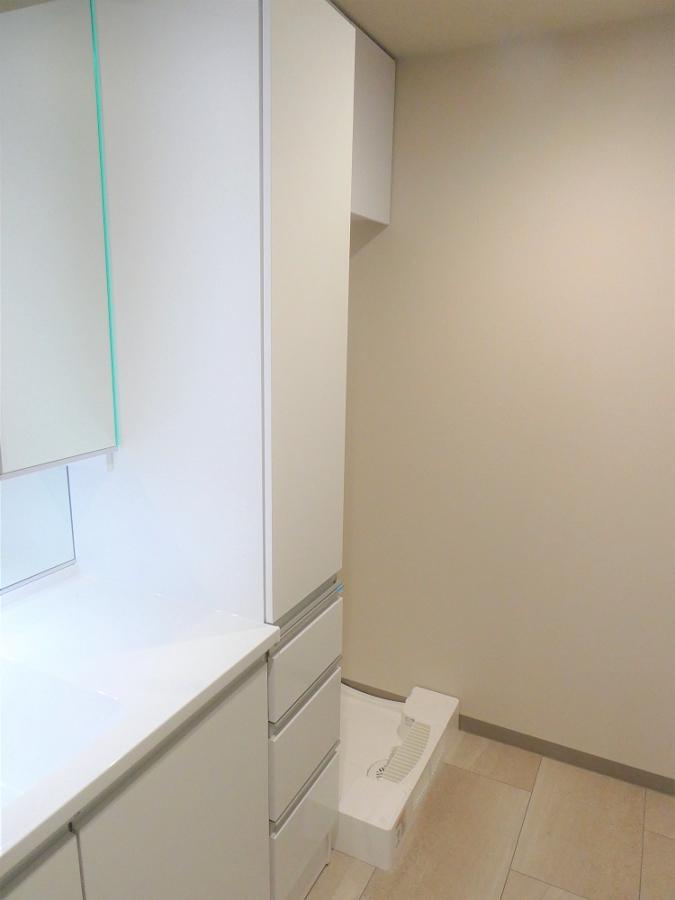 洗面台横にはトールタイプの収納を設置致しました。
