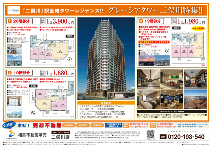 駅直結タワーレジデンス「グレーシアタワー二俣川」が4部屋登場!!