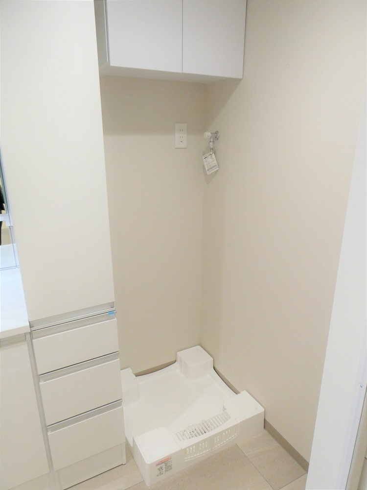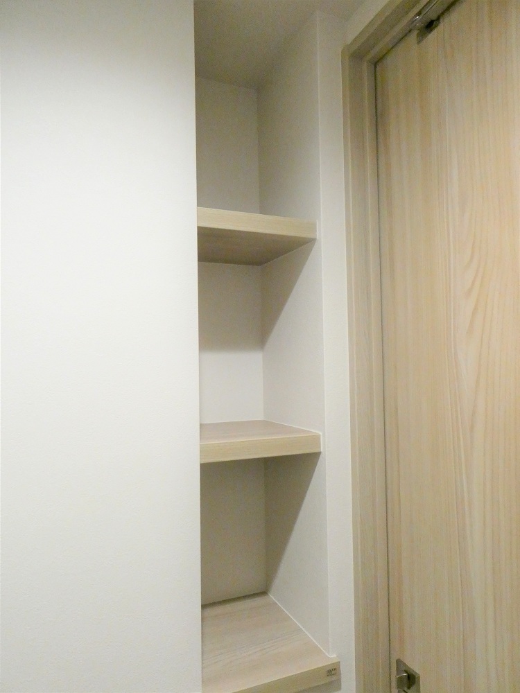 洗濯機置場上部には棚を設置。