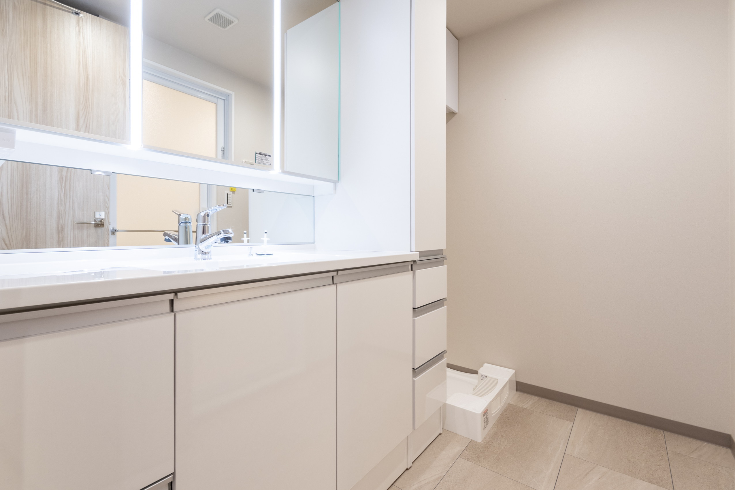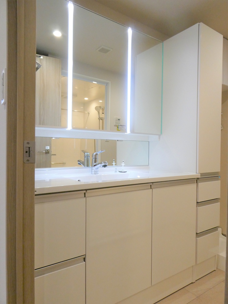 LED照明を採用した三面鏡タイプの洗面化粧台です。