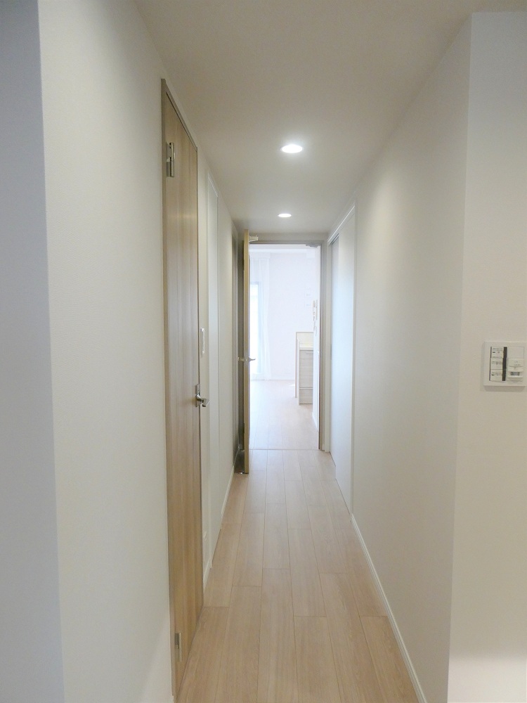 暖色系のLED照明を採用した廊下部分です。
