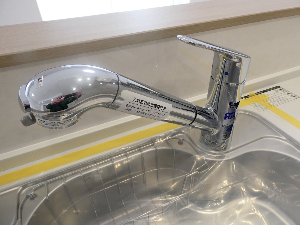浄水器付きシャワー水栓を採用しました。